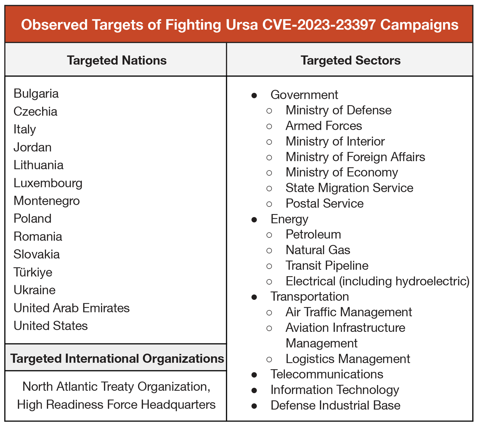 “During this time, Fighting Ursa conducted at least two campaigns with this vulnerability that have been made public. The first occurred between March-December 2022 and the second occurred in March 2023.” reads the report published by the company.